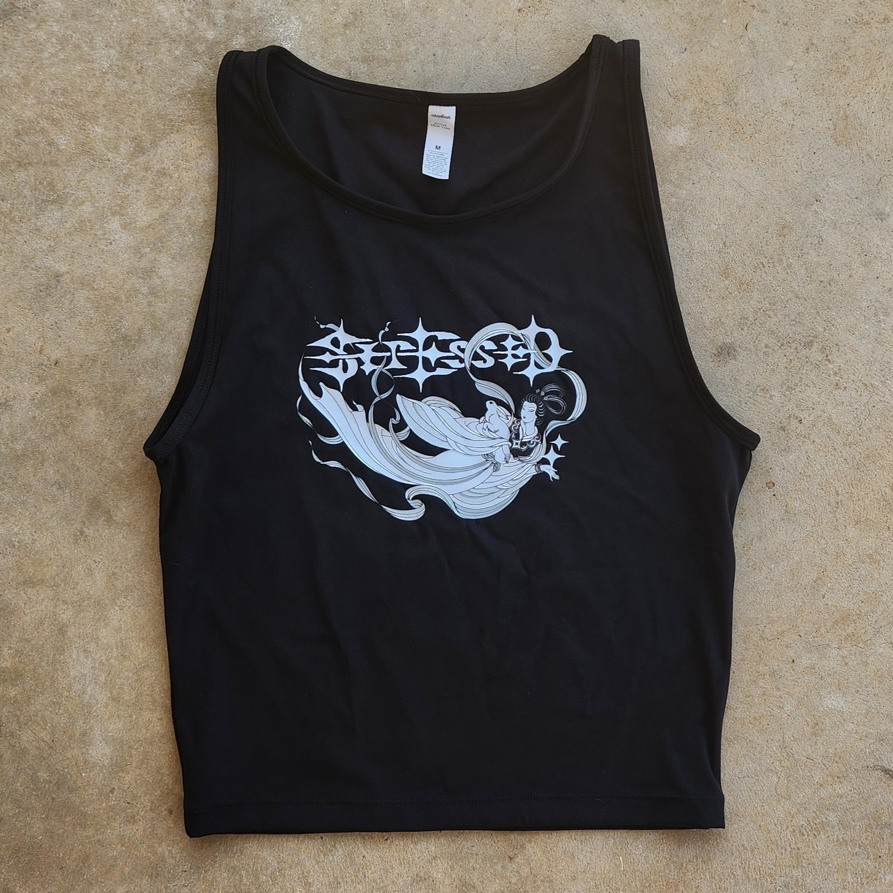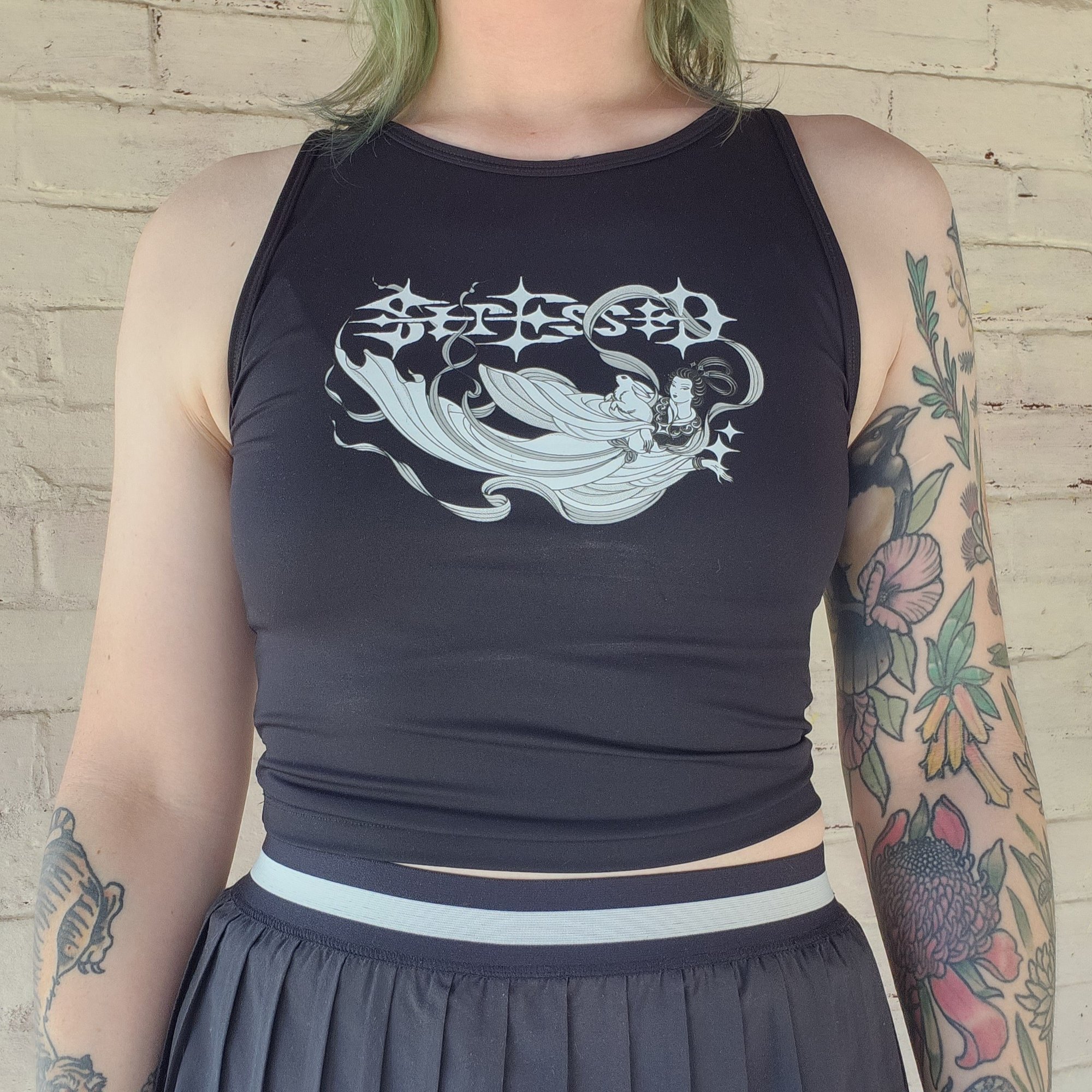 Stressed Chang'e design crop printed on AS colour active crop.